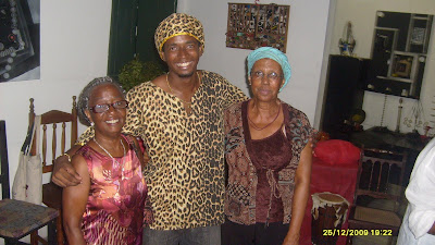 O momento de confraternização foi maravilhoso onde todas e todos puderam saborear a alimentação vegan e os deliciosos sucos de melancia e jaca com água de coco, preparados carinhosamente por Verônica e a haitiana Fabíola.Muitos irmãos sempre participam de todos os encontros de nossa organização, entre eles o sociólogo e militante da UNEGRO Valdir Estrela, ao qual agradecemos a constante solidariedade e presença.Como a reflexão da kwanzaa 2009 foi à família preta e ancestralidade não poderia falta à presença de famílias especiais, como as de Beto e Alexandre. Na foto uma parte da Grande Família Preta:Esta foi a nossa IIIª Kwanzaa e foi considerada por nós como a melhor delas. Agradecemos ao esforço de todas e todos que prepararam e participaram desse grande evento da família preta.